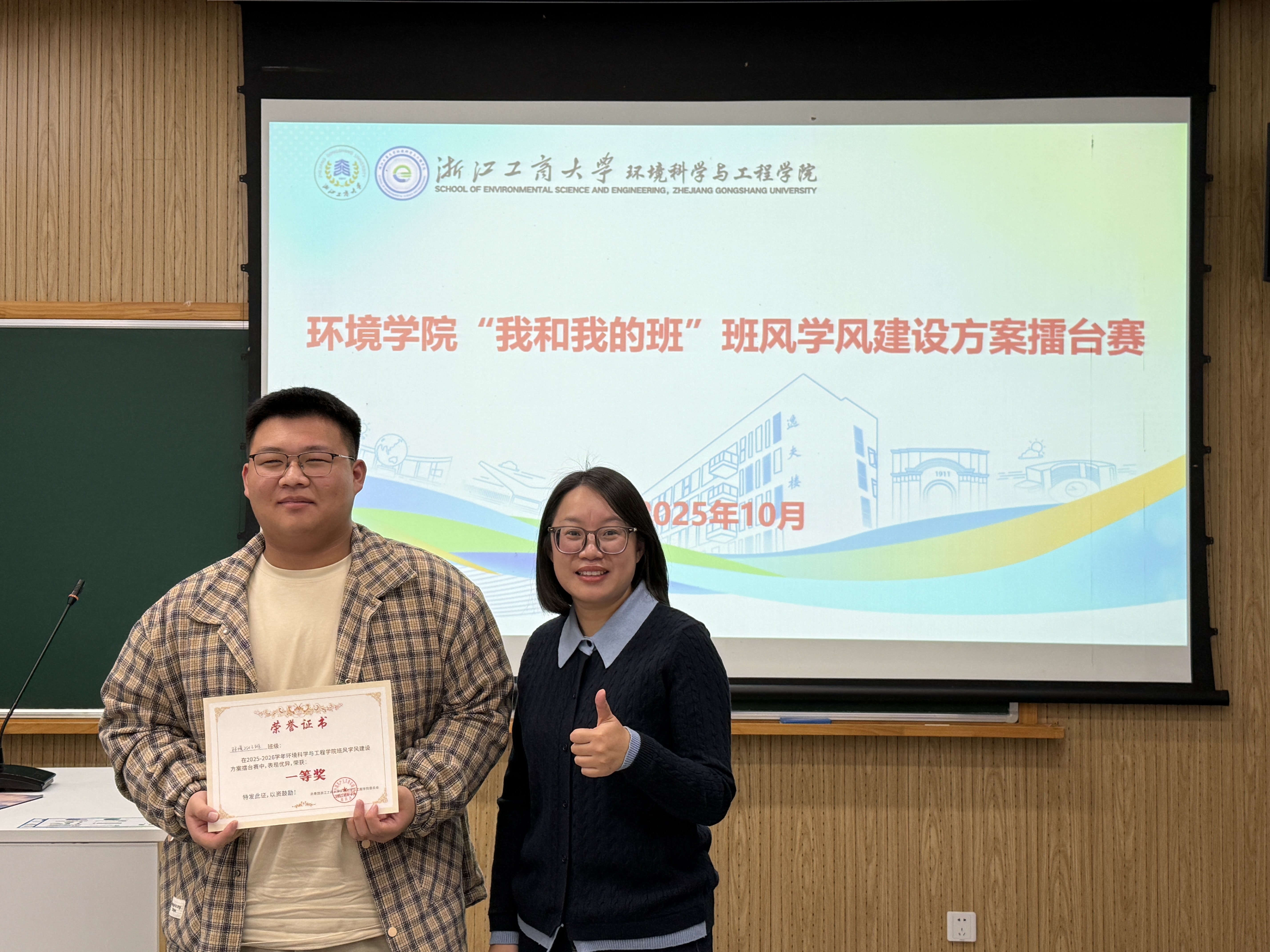 秋染校园皆诗意,学风建设谱新篇。为帮助25级新生快速适应大学生活,营造“比学赶超、团结奋进”的班级氛围,10月29日下午,环境学院在A227教室成功举办“夯基筑梦,学风领航”2025级新生班风学风建设方案擂台赛。学院党委副书记石周燕、团委书记赵克维、辅导员孙雨以及全体25级班委参加本次活动。